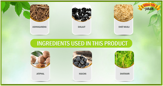 शक्तिशाली अवयवों में स्वाभाविक रूप से सेक्स ड्राइव को बढ़ाने और पुरुष प्रजनन अंग में रक्त के प्रवाह में सुधार के बारे में बताया गया है। यह पुरुष प्रजनन प्रणाली को मजबूत करता है और सभी प्रकार की यौन कमजोरी को जड़ से मिटाने में बेहद मददगार होता है। Erectile dysfunction और premature ejaculation यौन गतिविधि को संतोषजनक ढंग से करने के लिए इरेक्शन विकसित करने और बनाए रखने में असमर्थता है।पुरुषों में यौन शक्ति बढ़ाने और नपुंसकता में इष्टतम परिणाम देने के लिए विभिन्न गुणकारी जड़ी बूटियों का उपयोग हमने Horsefire tablet के निर्माण में सही अनुपात में किया है। Horsefire tablet कई पुरुषो के स्वास्थ्य मुद्दों- नपुंसकता, शीघ्रपतन, कम वीर्य उत्पादन, और कम शुक्राणुओं की संख्या को ठीक करने में उत्कृष्ट परिणाम देता है। हस्तमैथुन के कारण कमजोर या क्षतिग्रस्त प्रजनन अंगों को Horsefire tablet के उपचार से हल किया जाता हैं। Horsefire tablet sex power medicine for men के रूप में काम करता है।
